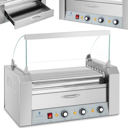 Rullveida grils ar vāku un sildīšanas atvilktni maizītēm 16 desiņām Hotdogs 2200W 230V Royal Catering