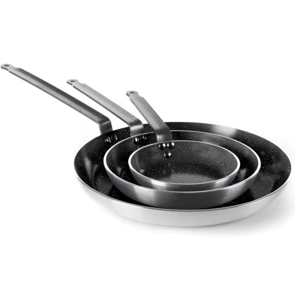 Patelnia z nieprzywierającą markmurkową powłoką marki Hendi to naczynie, które znajdzie zastosowanie w często uczęszczanych restauracjach, hotelach serwujących posiłki i innych punktach gastronomicznych. Dzięki wykonaniu z twardego odlewu aluminium patelnia bardzo szybko się nagrzewa, a indukcyjne dno sprawia, że może pracować z każdym typem kuchenek.