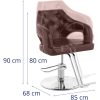 Frizēšanas krēsls no Physa zīmola pēdas ir piemērots lietošanai matu salonā, tetovējumā vai kosmētikā. Universālais un elegants brūnā krāsā dizains pielāgosies katras viesistabas telpai, un pēda sniegs maksimālu mierinājumu sēdēšanai. Daudzas augstas kvalitātes putas ir KKA un saglabā savu formu, un mākslīgā iežu polsterējums tīrīšanai ir ļoti tīrs (izturīgs pret putekļiem un ūdeni). Zirgu krēsla augstuma pielāgošana diapazonā no 470 līdz 570 mm ar hidrauliskā sūkņa palīdzību, kas pagarināts no pamatnes. Zirgu krēsla rāmis ir izgatavots no izturīga tērauda, pateicoties tam, sēdekļa cilpai ir līdz 150 kg, tam ir apjoms un tas ir droši lietojams. Hroma elementi pievieno elegantu izskatu.