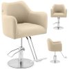 Komfortowe zabiegi zapewniają wysokie podłokietniki oraz wysokiej jakości pianka, pełniąca rolę wyściółki. Tapicerkę wykonano ze sztucznej skóry, jest ona łatwa w czyszczeniu, odporna na wodę i kurz. Wysokość fotela regulowana jest w zakresie 880-1030 mm za pomocą pompy hydraulicznej. Stelaż fotela wykonano z wytrzymałej i eleganckiej stali nierdzewnej. Stabilna konstrukcja bezpiecznie utrzymuje obciążenie 200 kg i zapewnia oparcie krzesła oraz wysoką trwałość. Duża podstawa o średnicy 45 cm dodatkowo zwiększa stabilność. Gładkie powierzchnie ze stali nierdzewnej podkreślają stylowy wygląd.