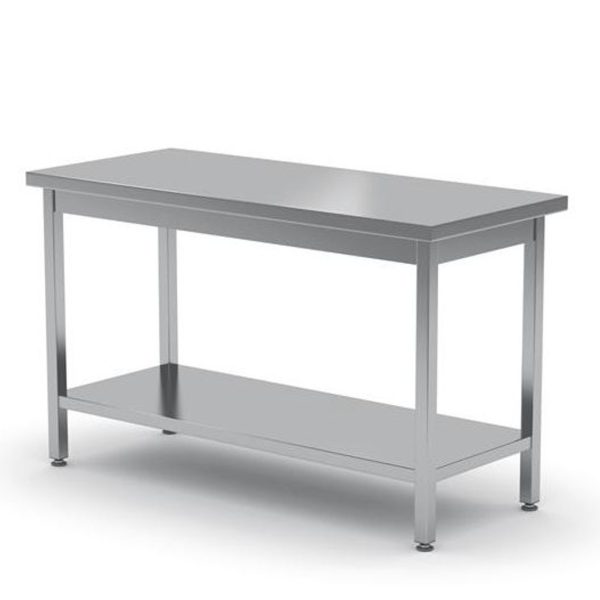Galds, darba virsma, centrālais, tērauda, ar plauktu, 160x60cm – Hendi 811542