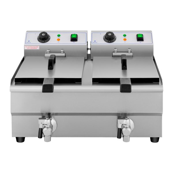 Divkāršais elektriskais fritieris ar krānu 230 V 2 x 3000 W 2 x 10 L
