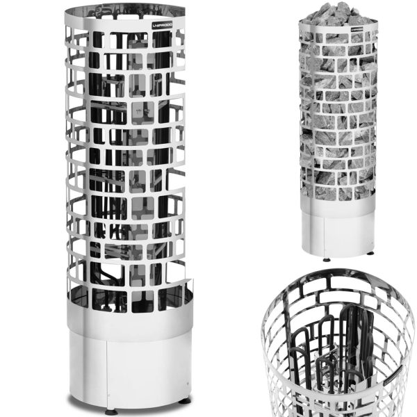Piec do sauny marki Uniprodo sprawdzi się w domach, hotelach, ośrodkach wypoczynkowych czy SPA. Moc urządzenia wynosi 6 kW, co pozwala na szybkie osiągnięcie temperatury do 110deg C. Piec będzie idealny dla pomieszczeń o objętości 5-9 m3. Konstrukcję wykonano ze stali nierdzewnej, co gwarantuje dużą wytrzymałość na uszkodzenia oraz na korozję. Poziom ochrony IPX4 oznacza, że sprzęt odporny jest na działanie wody. Aby zwiększyć wilgotność w saunie bez obawy można polać wodą rozgrzane kamienie. 4 gumowe nóżki zapewniają stabilność, nie ślizgają się i chronią podłogę przed zarysowaniem. Niewielka waga sprzętu pozwala na wygodne przenoszenie oraz manewrowanie. Sprzęt wymaga napięcia 400 V, a zakres dostawy nie obejmuje przewodu zasilającego i wtyczki.