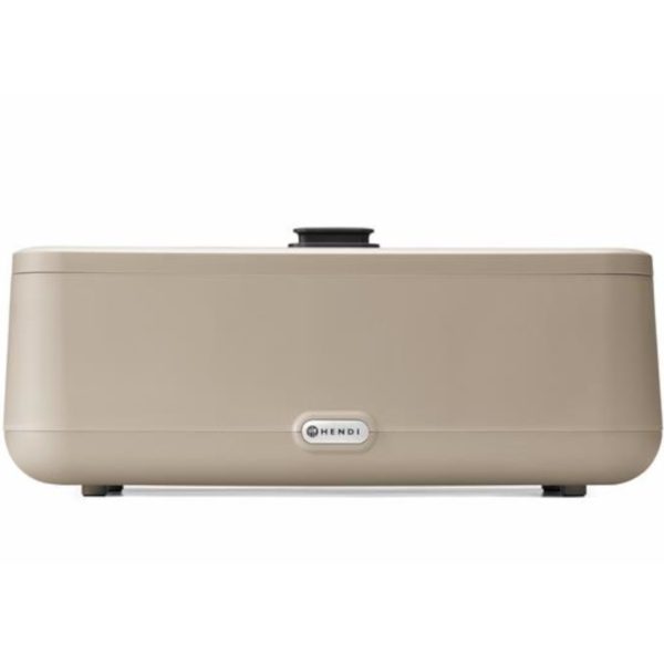 Podgrzewacz elektryczny HENDI UNIQ został zaprojektowany przez renomowanego holenderskiego projektanta Roberta Bronwassera i jest dostępny w 3 stylowych kolorach. Urządzenie ma nowoczesną obudowę i wyróżnia się kilkoma niezwykłymi funkcjami. Wystarczy podłączyć, napełnić pojemnik wodą, a podgrzewacz utrzyma zapiekanki, mięsa, gotowane warzywa, makarony, sosy i inne potrawy w stałej, idealnej temperaturze serwowania. Obudowa została wykonana z polipropylenu odpornego na wysoką temperaturę. Demontowany wkład GN 1/1 o wysokości 100 mm został wykonany ze stali nierdzewnej AISI 304, jest łatwy w czyszczeniu. Pokrywa ze szkła hartowanego wyposażona została w izolowany uchwyt oraz aluminiowy zawias. Na pokrywie umieszczono uchwyt na etykietę z nazwą dania. Elektroniczny panel sterowania wyświetla czas pracy, temperaturę zadaną oraz aktualnie ustawioną. Ostatnia ustawiona temperatura grzania jest zapamiętywana i zostaje automatycznie wybrana przy włączeniu urządzenia. Zakres regulacji temperatury wynosi od 35 do 85deg C co 1deg . Pojemnik na wodę pomieści max 4 l. Bemar nie jest przeznaczony do gotowania a jedynie do utrzymywania ciepła.