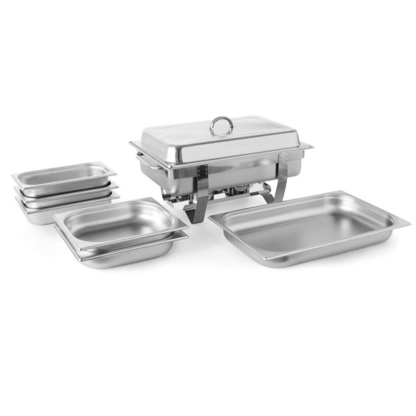 Podgrzewacz do potraw na pastę lub świeczki w dużym zestawie z pojemnikami GN w różnych rozmiarach marki Hendi to rozwiązanie zaprojektowane z myślą o firmach cateringowych, hotelach, restauracjach czy barach samoobsługowych. Charakteryzuje się ustandaryzowanym rozmiarem oraz wykonaniem z satynowanej stali nierdzewnej, która zwiększa trwałość konstrukcji.