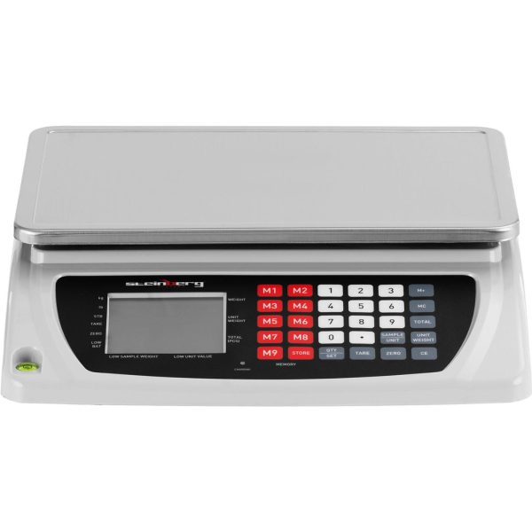 Waga licząca marki Steinberg Systems pozwala określić liczbę sztuk na podstawie ich wagi. Waga sprawdzi się zarówno w produkcji przemysłowej, jak i przy inwentaryzacji czy w handlu detalicznym. Urządzenie jest niezwykle dokładne (0,6 g) przy maksymalnym obciążeniu 7,5 kg. Na podświetlanym wyświetlaczu LCD można wyraźnie odczytać zmierzone wartości masy całkowitej, masy sztuki i liczby sztuk. Cyfry mają wysokość 14 mm. Panel sterowania z 30 przyciskami pozwala wywołać z pamięci 9 pozycji a także uruchamia inne funkcje. Oprócz liczenia waga ma opcje: zamiany jednostki z kg na funty, zerowania i tarowania. Powierzchnia ważenia ma wymiary 335 x 230 mm. Waga zasilana jest przez zasilacz sieciowy lub akumulator, dzięki czemu idealnie nadaje się również do użytku mobilnego. Akumulator wykazuje niesamowitą wytrzymałość. Alarm informuje o niskim poziomie baterii. Obudowa wyświetlacza wykonana jest z wytrzymałego tworzywa ABS, a powierzchnia do ważenia z odpornej stali nierdzewnej.