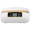 Urządzenie wyposażone zostało w panel sterowania z ekranem LCD, który pozwala kontrolować parametry procesu. Inkubator posiada system rotacji jajek oraz wbudowany owoskop do podglądania zarodków. W urządzeniu zastosowano silnik o mocy 90 W, energooszczędny i bardzo wydajny a także inteligentny system kontroli temperatury w zakresie 30 – 39,5deg C. Silikonowy przewód grzewczy utrzymuje moc i temperaturę na stabilnym poziomie. Inkubator posiada stopień ochrony IPX4, jest odporny na spryskiwanie i zachlapanie wodą z różnych kierunków. Bezpieczeństwo zapewnia także system ochrony przed porażeniem prądem.