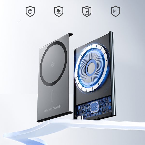 Z powerbankiem Choetech SuperThin B708 nigdy nie zostaniesz z pustą baterią. Dzięki ładowaniu indukcyjnemu możesz naładować swoje urządzenie bezprzewodowo przez moduł MagSafe / Qi o mocy 5W.