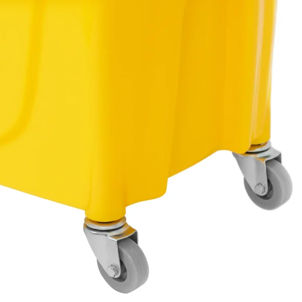 Wózek do sprzątania marki ulsonix o dużej pojemności pozwoli wyczyścić podłogę łatwiej niż kiedykolwiek. Wyżymaczka i inne praktyczne elementy sprawiają, że jest on łatwy i wygodny w użyciu. Zintegrowane wiadro o pojemności 24 l zapewnia wystarczającą ilość wody do mycia. Jest to więc idealny sprzęt dla szkół, restauracji, barów, hoteli, biur i wszystkich pomieszczeń wymagających regularnego czyszczenia podłóg. Dzięki stabilnemu dociskowi wyżymaczka z gumowaną dźwignią zapewnia równomierny nacisk na mopa. W ten sposób łatwo pozbyć się nadmiaru wody. Aby wygodniej napełnić lub opróżnić wiadro znajdujące się pod spodem, wystarczy zdjąć prasę za pomocą praktycznego uchwytu. Wiadro i wyżymaczka są wykonane z łatwego w pielęgnacji tworzywa sztucznego. Jest to idealny materiał do przenoszenia wody i środków czyszczących. Niezwykle mocne koła gwarantują cichą i płynną jazdę po każdej powierzchni. Ochronią więc podłogę przed niechcianymi zarysowaniami. Wózek do sprzątania jest w kolorze żółtym oraz posiada uniwersalne ostrzeżenie przed poślizgnięciem.