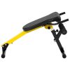 Ławkę treningową stworzono z myślą zarówno o profesjonalistach, jak i amatorach. Możliwość regulacji pozwala dostosować sprzęt treningowy do rodzaju ćwiczeń. Ustalisz m.in. wysokość w 1 z 5 pozycji (59-66 cm), a także kąt nachylenia oparcia/siedziska (22-28deg ). Blokadę nóg również możesz regulować. Zmienisz jej wysokość w zakresach 5-10,5 cm (trening pleców) i 0-10,5 cm (trening brzucha) oraz kąt nachylenia – 10-30deg (trening pleców) i 28-90deg (trening brzucha). Wytrzymałość na obciążenia do 130 kg wynika z zastosowania materiałów wysokiej jakości. Ramę ławki treningowej wykonano ze stali gwarantującej wysoką trwałość. Z kolei obicie ze skóry syntetycznej są mocne oraz łatwe w czyszczeniu. Całość z łatwością złożysz i przechowasz.