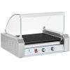 Grill rolkowy przeznaczony jest do szybkiego przygotowania kiełbasek i parówek HOT DOG. Urządzenie dobrze sprawdzi się w profesjonalnych kuchniach, barach, na stacjach paliwowych oraz w mobilnych punktach gastronomicznych. Moc urządzenia wynosi 2200 W. Temperaturę reguluje się płynnie do 250deg C. Rolki grzewcze (11 szt.) wykonane zostały ze stali pokrytej TEFLONEM wysokiej jakości, który zapobiega przywieraniu podgrzewanych produktów i ułatwia późniejsze czyszczenie.