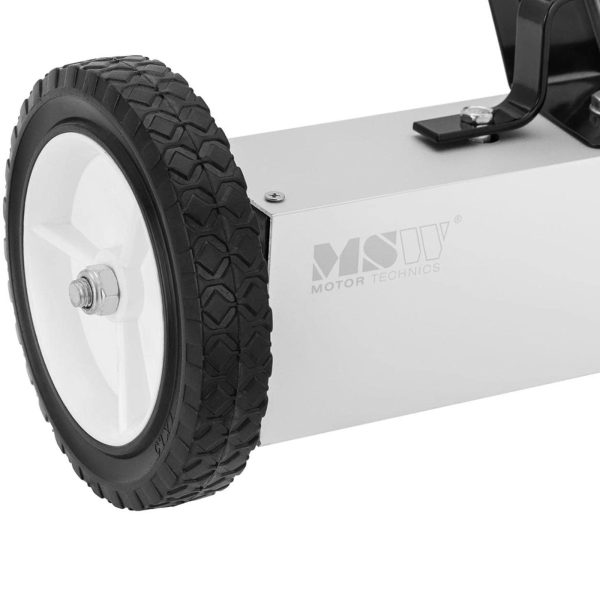Miotła magnetyczna marki MSW posiada silny magnes ferrytowy. Z powodzeniem zbiera śruby, wióry, gwoździe, igły i inne drobne części metalowe. Pozwala wyczyścić chodniki, rampy, powierzchnie sklepowe, boiska sportowe, warsztaty, place budowy czy parkingi. Miotła posiada regulowany drążek w zakresie 73-100 cm. Szerokość miotły wynosi 45 cm. Czyszczenie magnesu przebiega szybko za sprawą uchwytu zwalniającego na urządzeniu. Duże koła zapewniają zwrotność urządzenia, sprawdzą się nawet na nieutwardzonych powierzchniach.